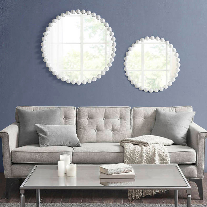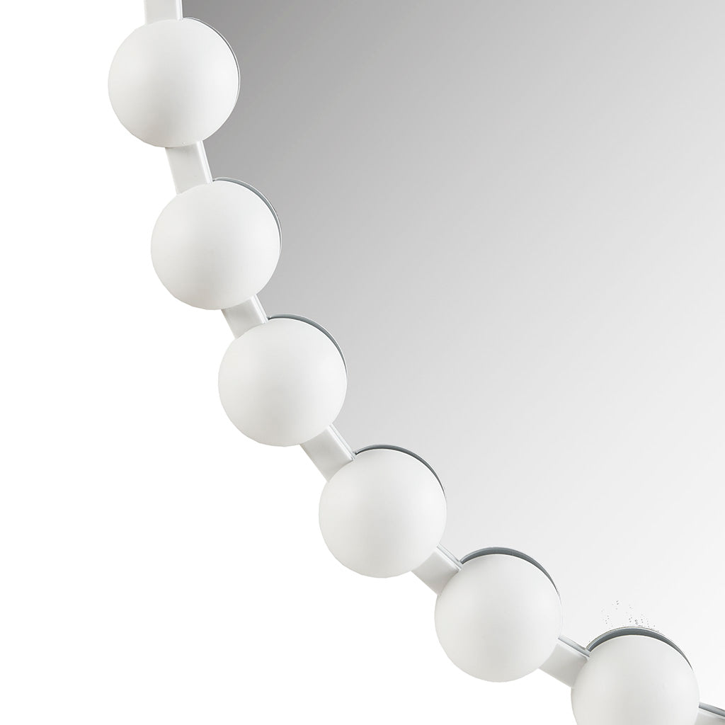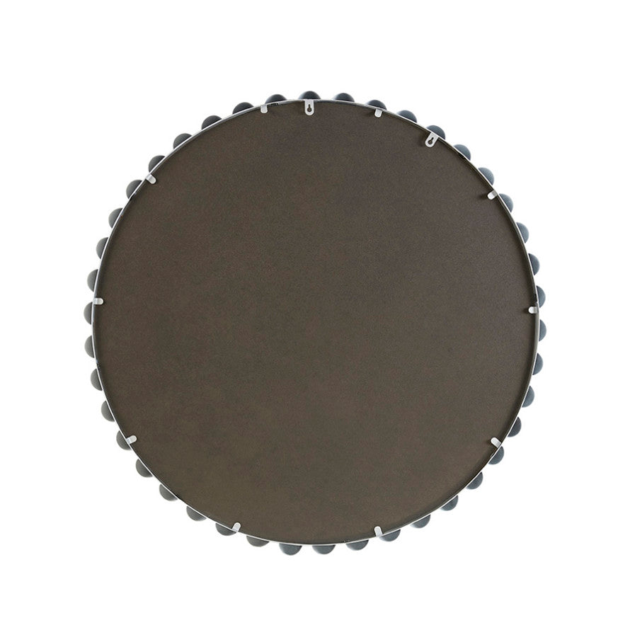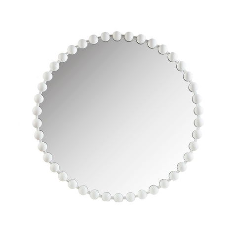 Reimagine your space with our Madison Park Signature Marlowe Beaded Round Wall Mirror. This round mirror features a stylized spherical iron frame finished with matte white foil, creating a bold and glamorous allure. The keyhole hook fixture on the back of the mirror allows for effortless hanging on your wall. Measuring 36x36" easily incorporate this mirror into any small space, bedroom, or entryway - for the perfect combination of modern glam and flair. Wipe clean with damp cloth and handle with care.
