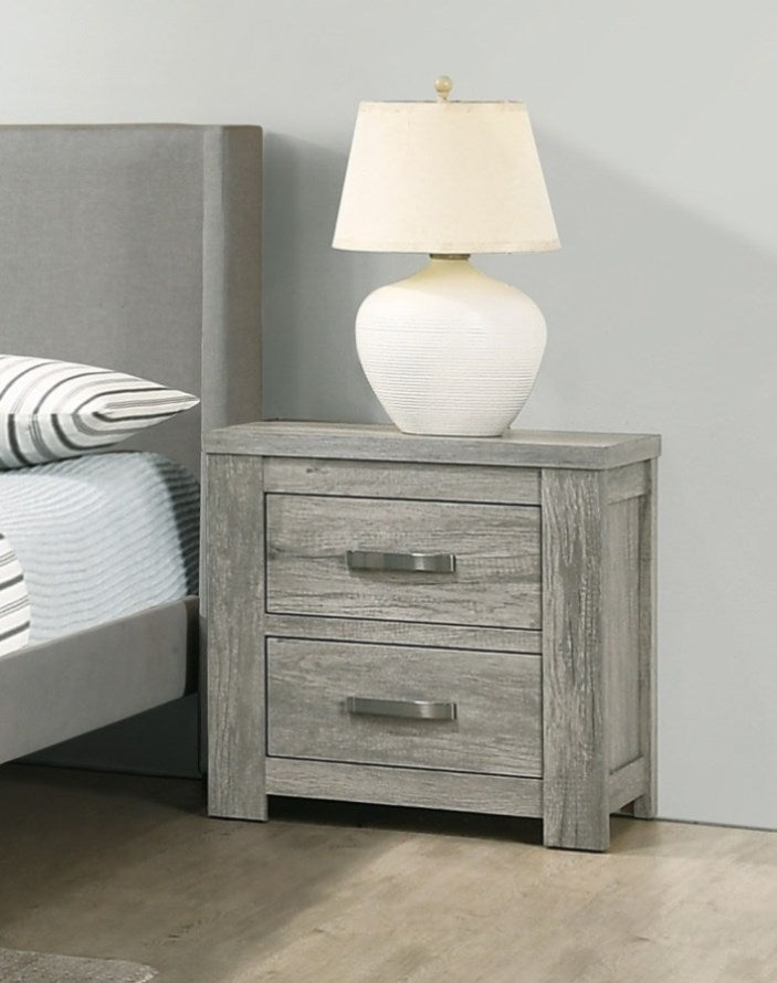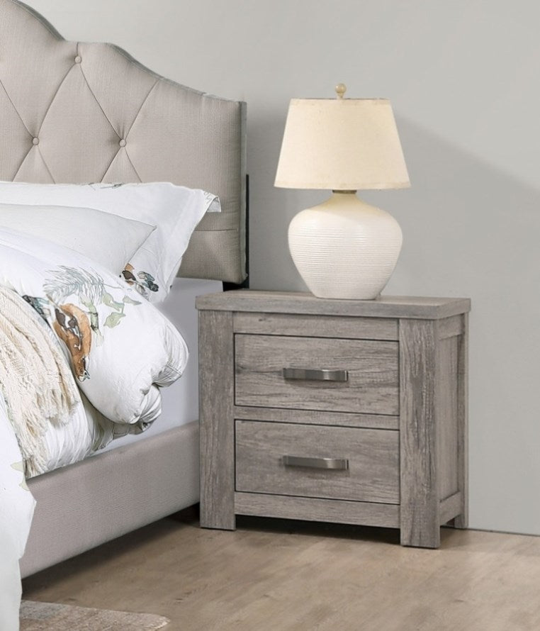 Bedroom Furniture Rustic Light Grey Simple 1pc Nightstand 2-Drawers Bed Side Table Solidwood B011P236769