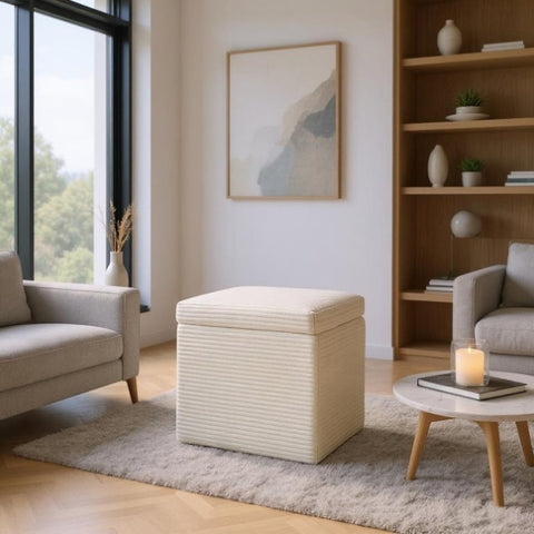 Make the most of your space with this chic and compact corduroy storage ottoman. Upholstered in ultra-soft ribbed corduroy, it offers both visual warmth and tactile comfort — perfect for creating cozy corners or complementing modern and retro interiors alike.