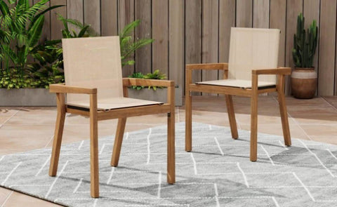 Simple Assembly: Sold in a set of two, these chairs require minimal assembly, offering hassle-free setup. Their combination of sturdy construction, sleek beige mesh, and teak finish makes them a stylish and reliable choice for outdoor seating.