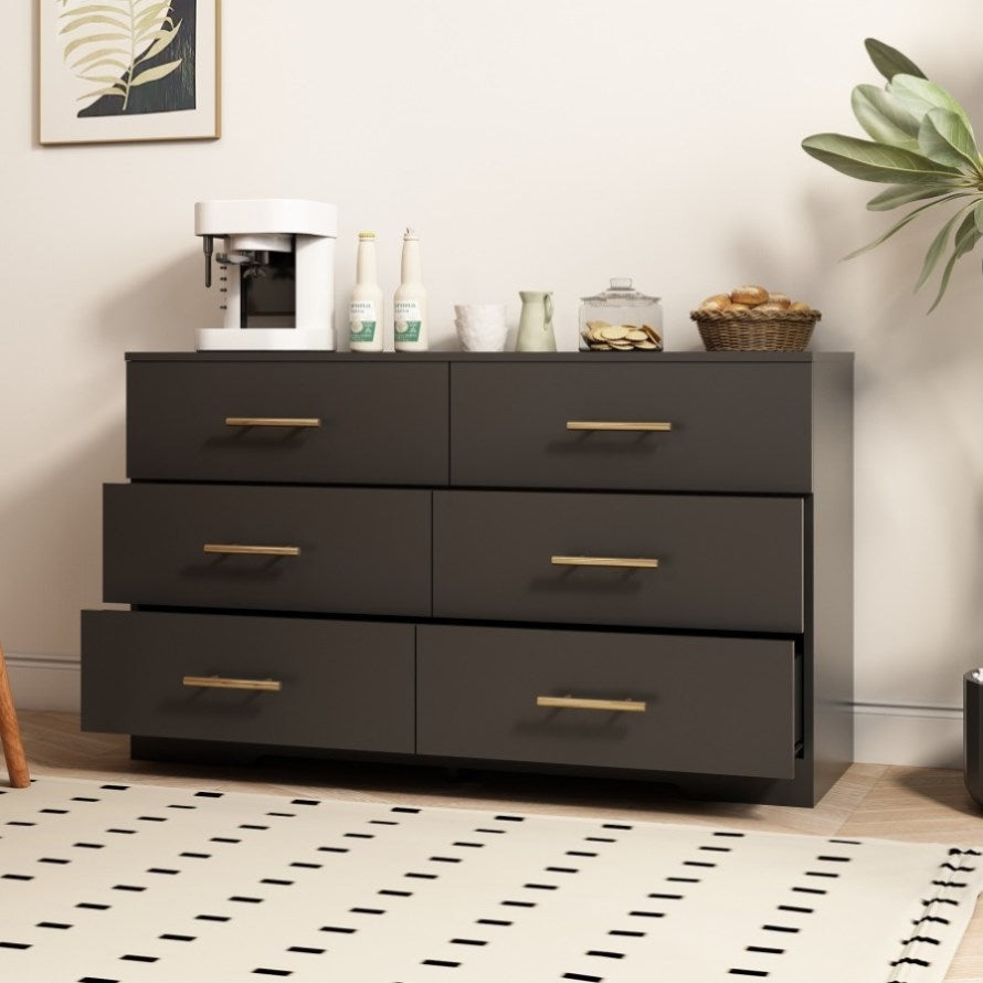 Black color Large 6 drawers chest of drawer dressers table with golden handle W1320110987