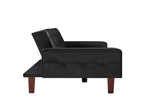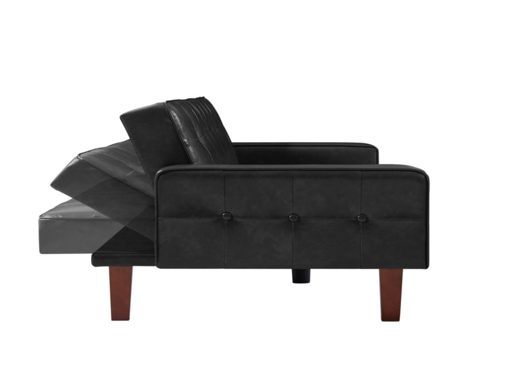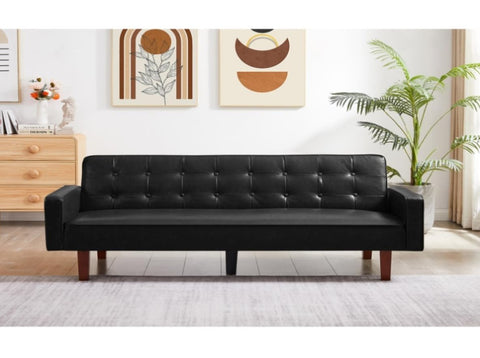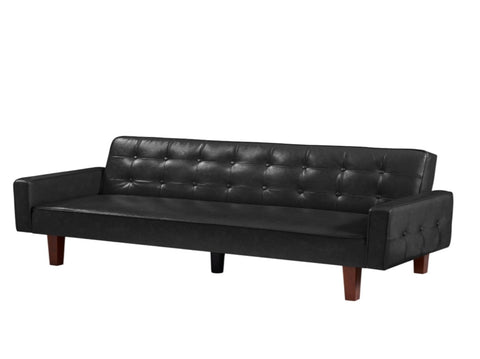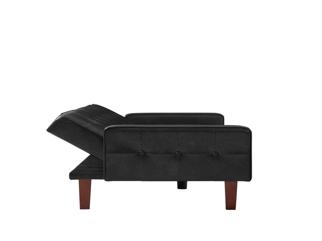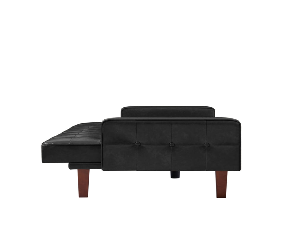 Black Convertible Double Folding Room Sofa Bed, PU Leather, Tufted Buttons, Suitable for 97825531