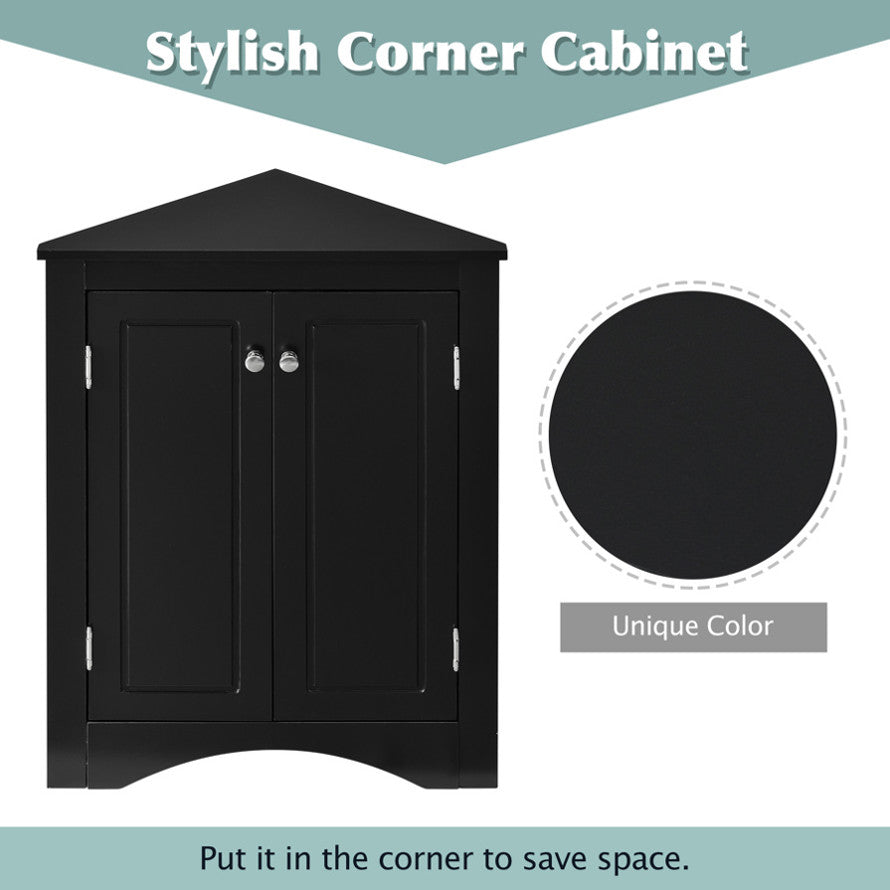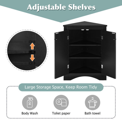 Black Triangle Bathroom Storage Cabinet with Adjustable Shelves, Freestanding Floor Cabinet for Home WF291467AAB