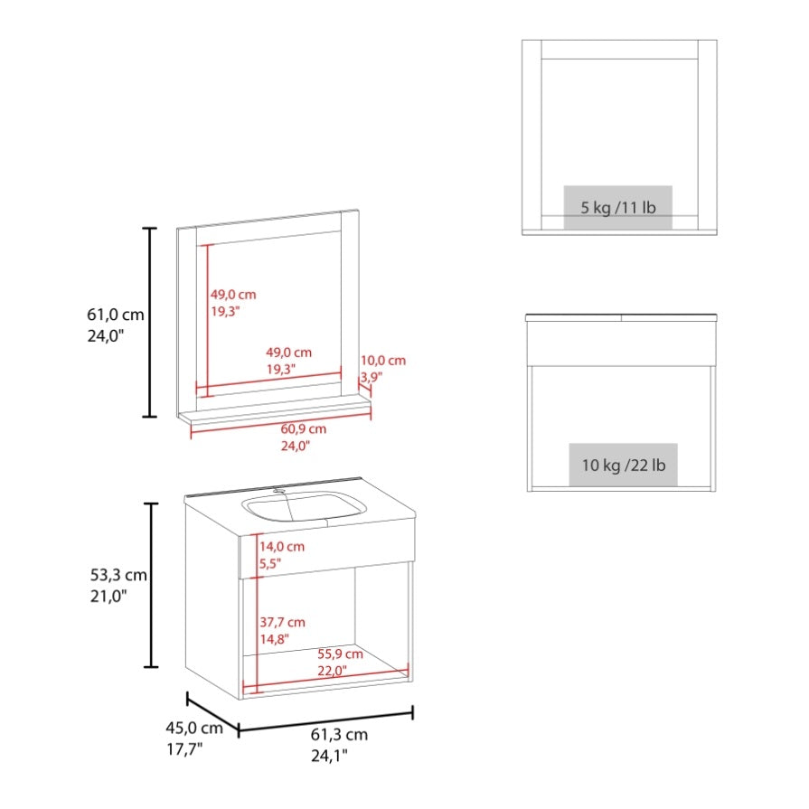 23.62 x 44.96 x 53.34 (W x D/L x H) cm