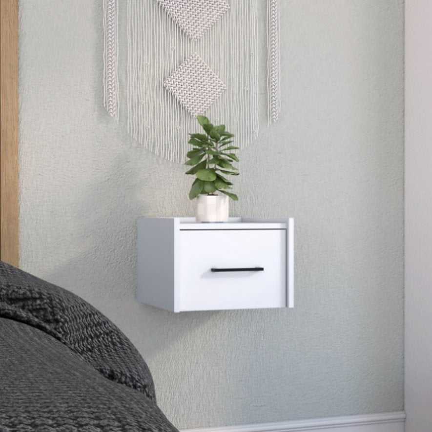Boa Floating Nightstand , End Table, Side Table Wall-Mounted Single Drawer Design with Handle- White B070137812