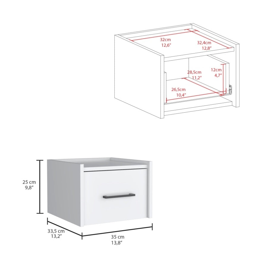Boa Floating Nightstand , End Table, Side Table Wall-Mounted Single Drawer Design with Handle- White B200137812