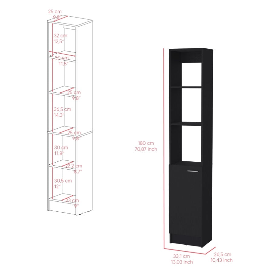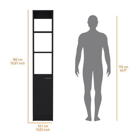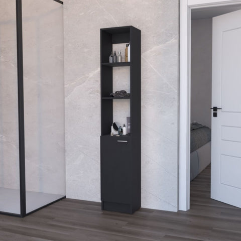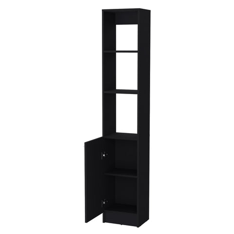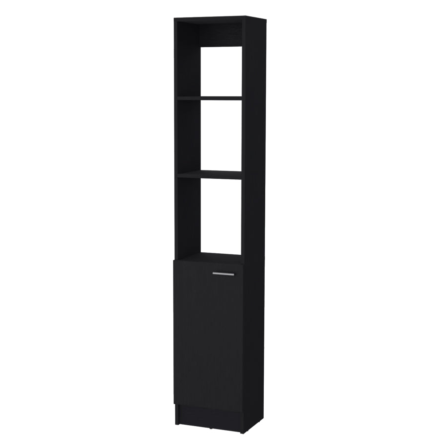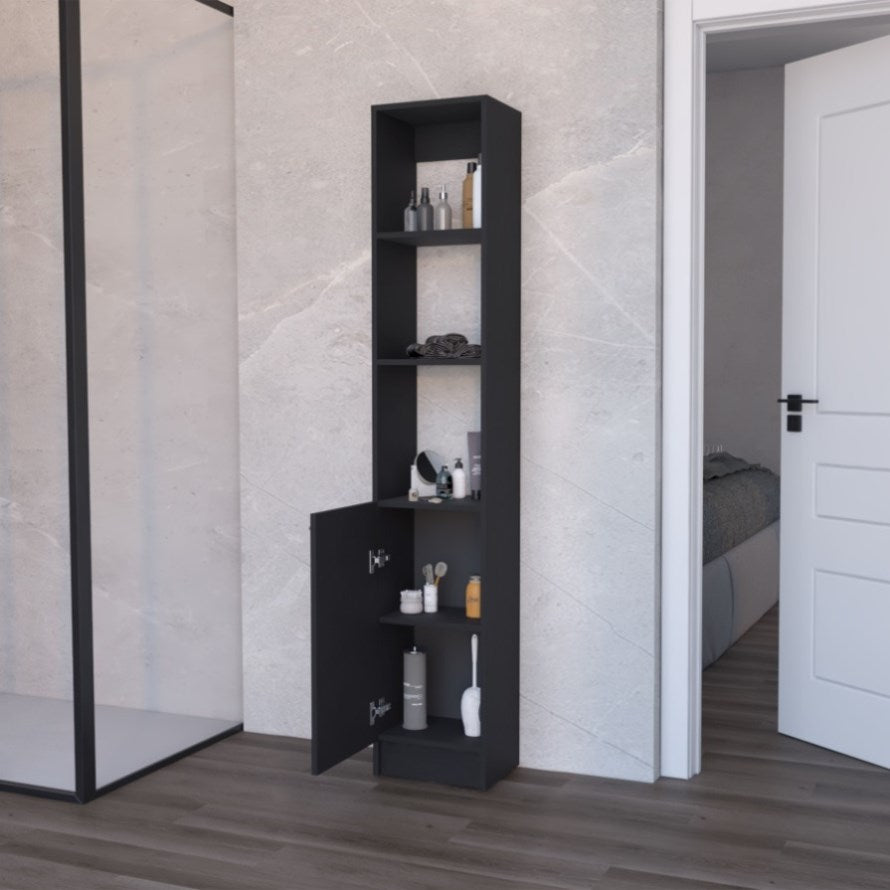 FM FURNITURE Brenda Linen Cabinet with 1 door, 3 open shelves and 2 hidden shelves, Black