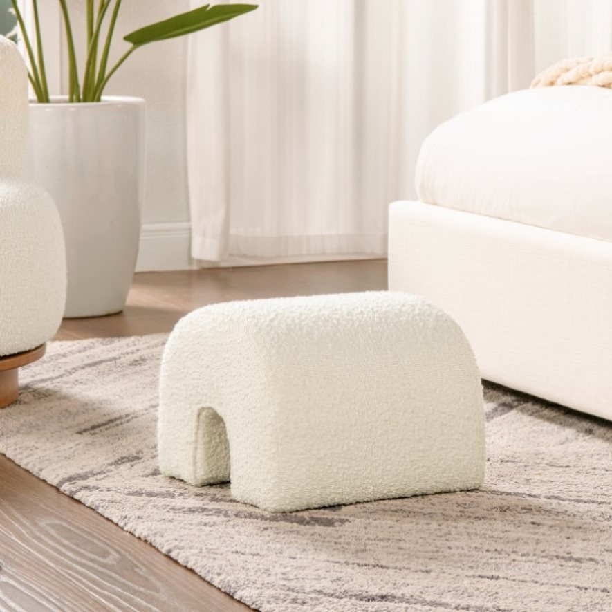 Bridge 16" Arched Upholstered Footstool Ottoman, Ivory White Boucle B2719P238430