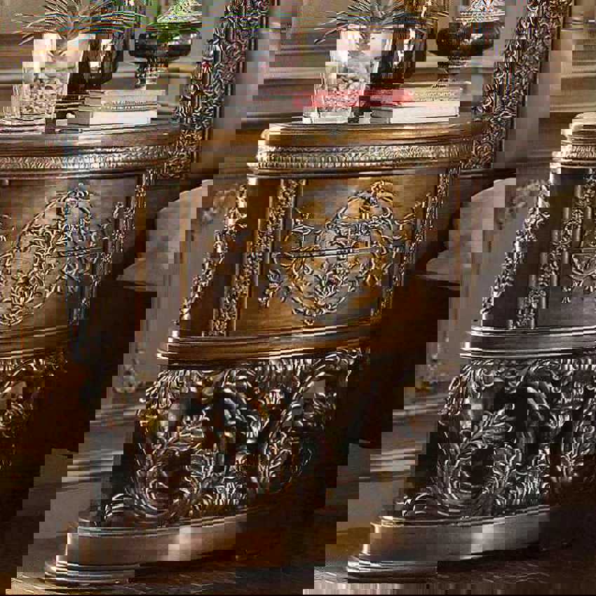 The brown finish provides a rich, natural look with deep, warm tones that enhance the wood's texture and grain, creating a classic and timeless aesthetic