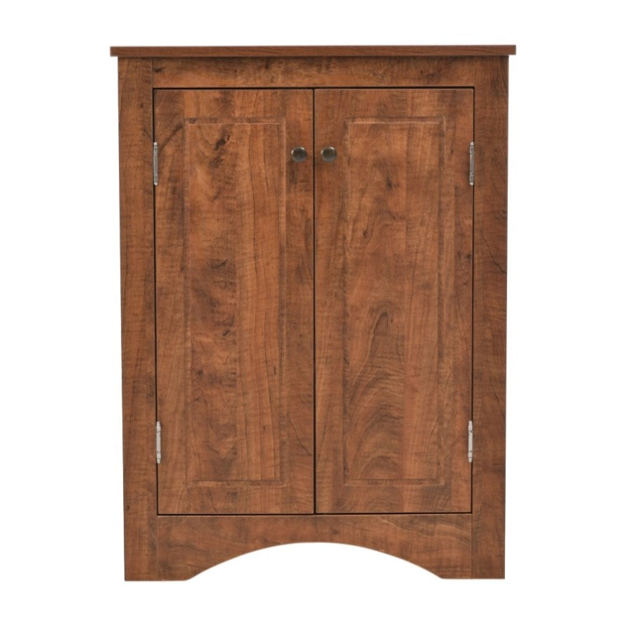 Brown Triangle Bathroom Storage Cabinet with Adjustable Shelves, Freestanding Floor Cabinet for Home WF291467AAD