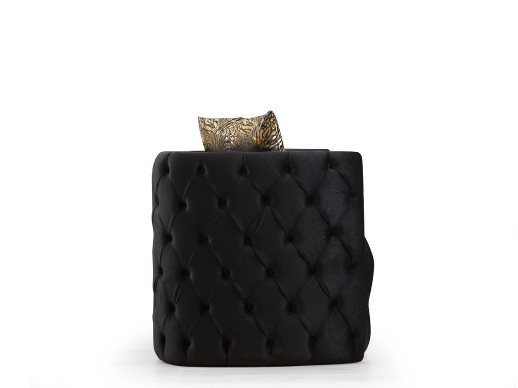 Button Tufted Chair Finished with Velvet Fabric and Gold Accent in Black B00961120