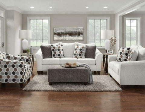 Create a casual chic living room with this Camero Fabric Pillowback Living Room Collection. Its blissfully textured upholstery is accented with welted trim. Slightly rolled arms, a pillow-style cushioned back, and patterned accent pillows make this sofa set complete. High-density seat cushions top coil springs and a hardwood frame for a perfectly comfortable sofa that seats up to 5 people in style.