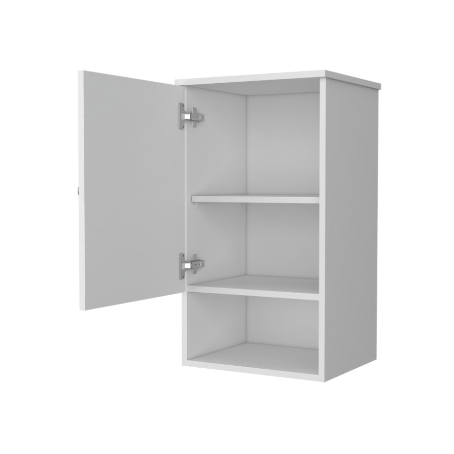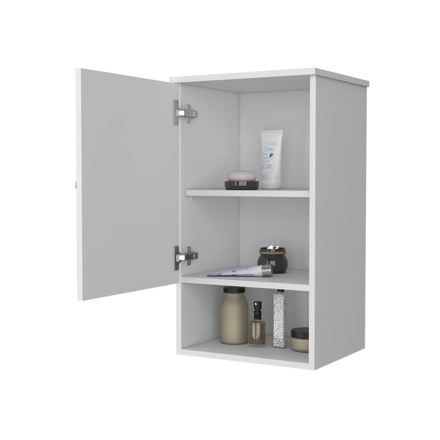 Includes two internal shelves behind the door for private storage and one open shelf for easy access to frequently used items.