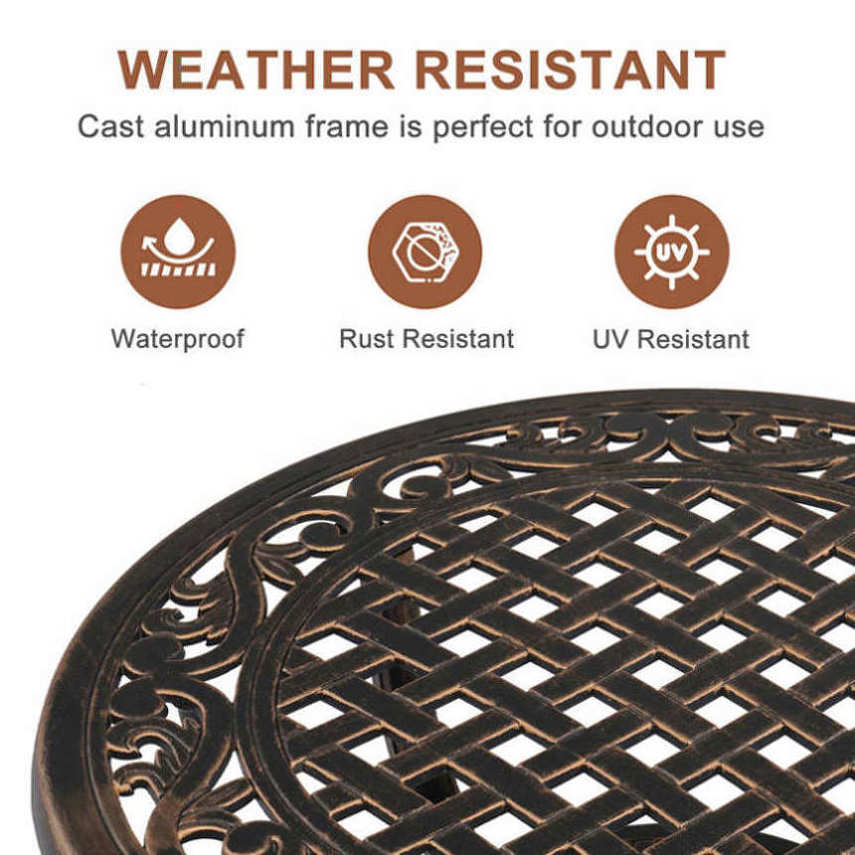 1. Durable Cast Aluminum Construction: This patio bar height table is built to last with its sturdy cast aluminum construction, ensuing that it remains sturdy and intact for years of outdoor use, even when exposed to rain, sun, or snow.