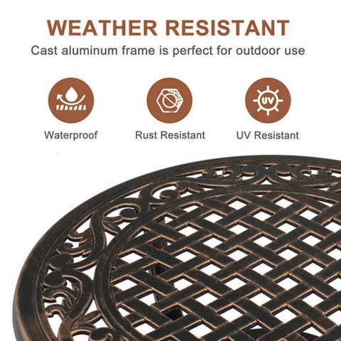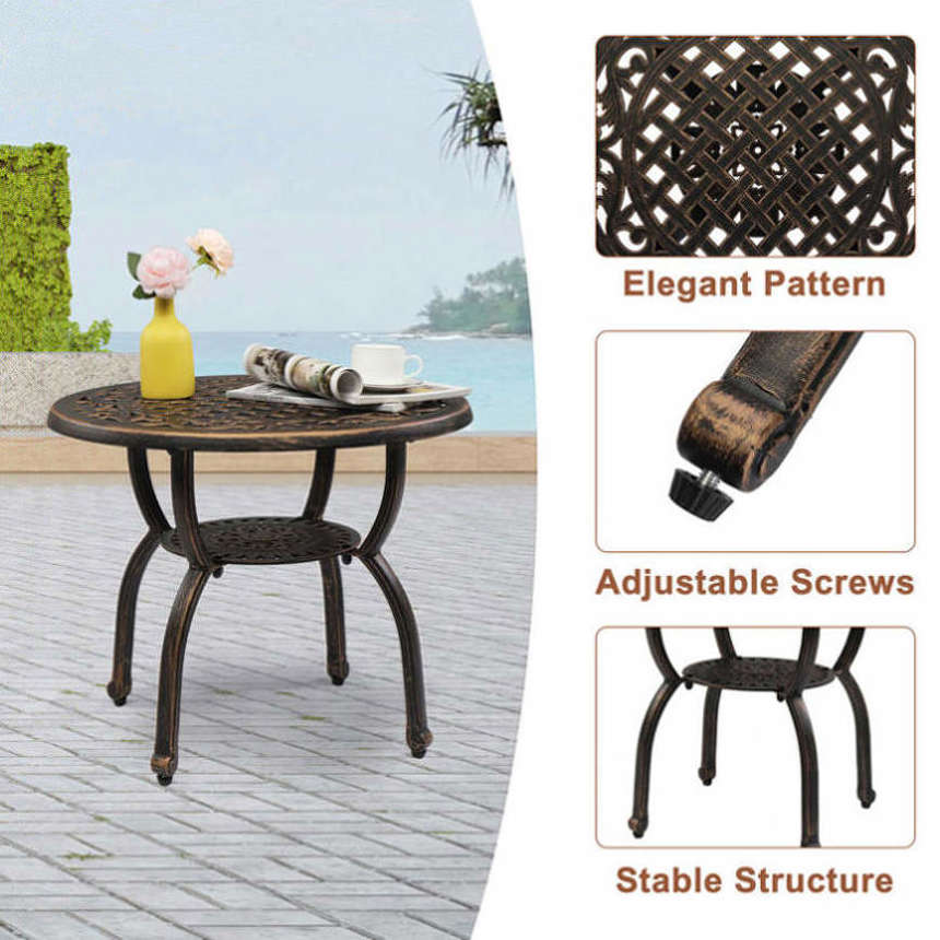 2. Vintage Charm: Antique bronze finish lends a timeless appeal. Intricate hollowed pattern on the tabletop makes it a captivating centerpiece for your porch, balcony, backyard, or garden.