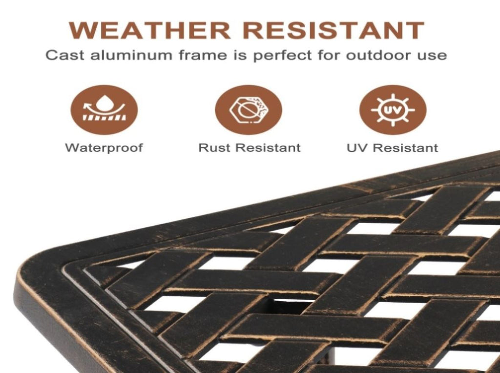 1. Durable Cast Aluminum Construction: This patio bar height table is built to last with its sturdy cast aluminum construction, ensuing that it remains sturdy and intact for years of outdoor use, even when exposed to rain, sun, or snow.