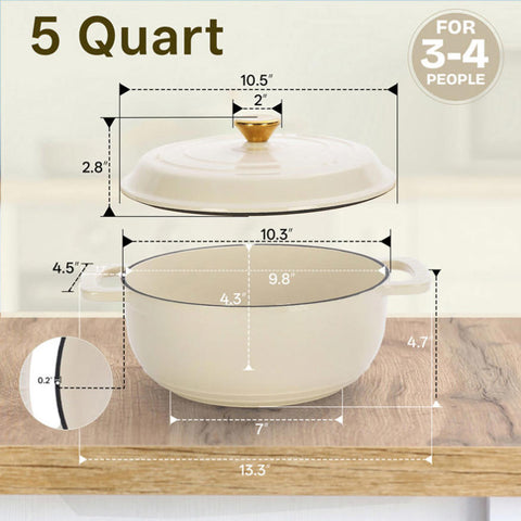 Cast iron 5QT cooking pot - ceramic white - comes with two silicone gloves - Enamel pot 06079080