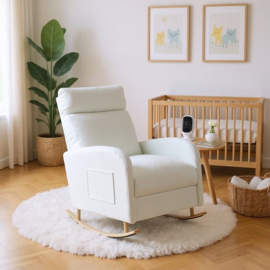 Whether placed in a living room, reading nook, nursery, or bedroom, this rocking chair blends seamlessly with modern and transitional interiors. Its durable iron legs add stability and strength, giving you peace of mind while you enjoy your quiet moments.