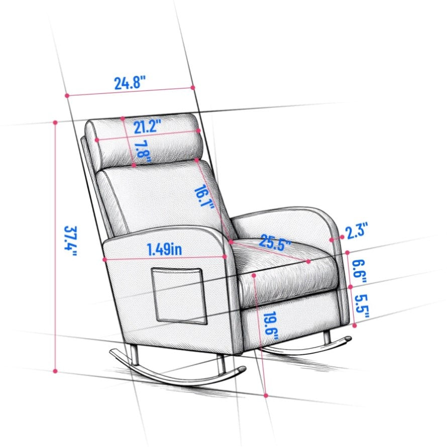 Bring both comfort and functionality into your home with this chenille upholstered rocking chair. Designed with a sleek metal base and gentle rocking motion, it offers the perfect spot to relax, read, or unwind after a long day.