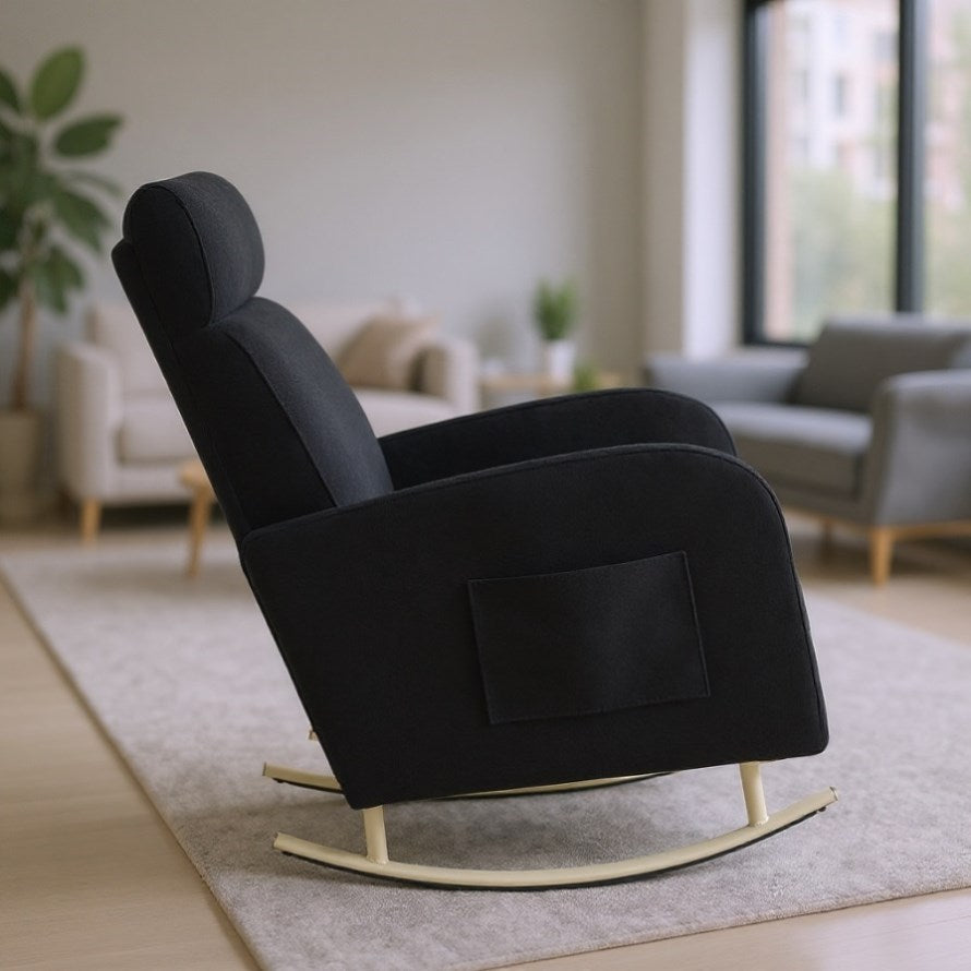 Whether placed in a living room, reading nook, nursery, or bedroom, this rocking chair blends seamlessly with modern and transitional interiors. Its durable iron legs add stability and strength, giving you peace of mind while you enjoy your quiet moments.