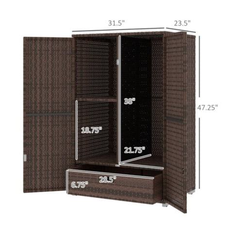 • - A drawer and a two-door cabinet for organized outdoor storage