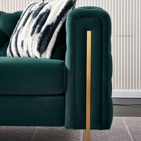 This modern velvet sofa was designed with tufted buttons and decorated with 4 gold metal legs. Simple and advanced, a great addition to completing your living room bedroom office, perfect accent furniture to match your decor.