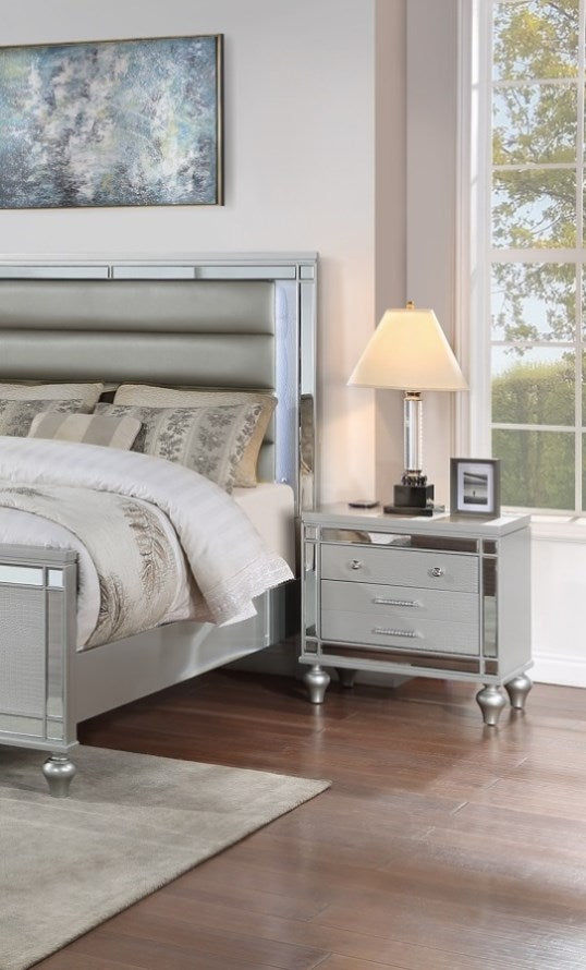 Classic Luxury Look Silver 1pc Nightstand Wooden Bedside Table Drawers w Mirror Glass Panel Bedroom B011P182674