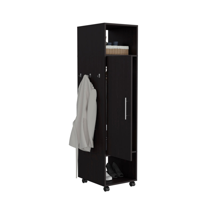 Cluster 63" Tall Wardrove One-Door Cabinet with Mirror, Three Shelves, Casters and Hanging Rod, B070P210733