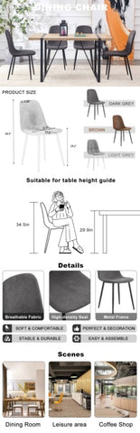 Dark Grey Linen-Cotton Texture: The dining chairs are made of dark grey linen-cotton fabric, with integrated seat and backrest design, solid color style, breathable and soft comfort,offering a warm and comfortable touch while presenting an elegant home atmosphere.Comfortable Experience: Thoughtful ergonomic design, ensure comfort during long periods of use.