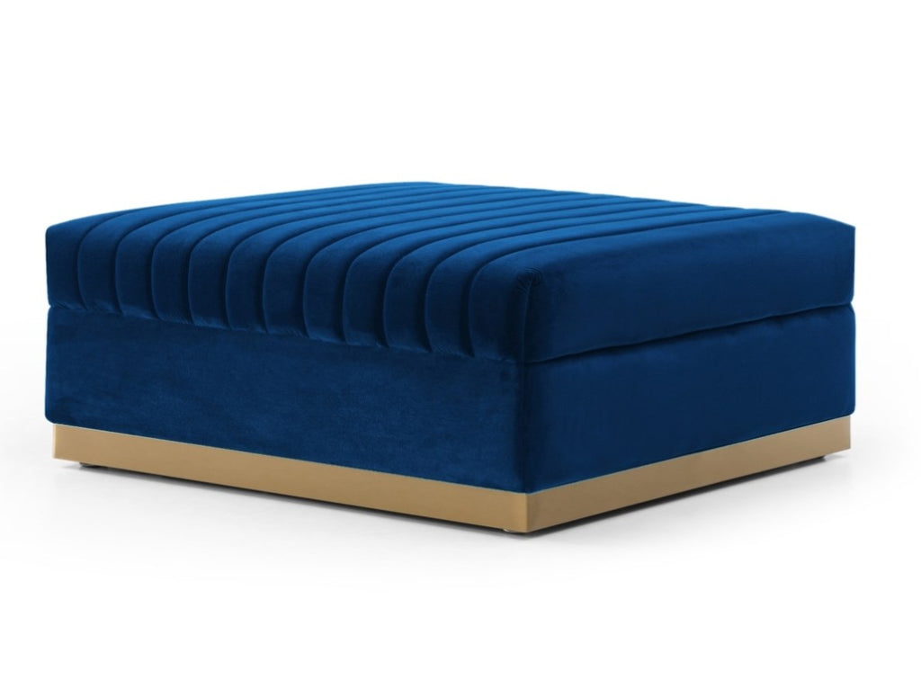 Contemporary Vertical Channel Tufted Velvet Big Size Ottoman Modern Upholstered Foot Rest for Living Room Apartment,Blue