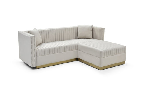 Contemporary Vertical Channel Tufted Velvet Big Size Ottoman Modern Upholstered Foot Rest for Living Room Apartment,Beige