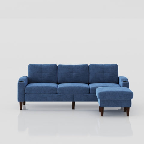 Convertible Combination Sofa Sofa L-Shaped Sofa with Storage Cabinet Footstool, Living Room Navy W2012126503