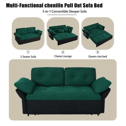 3-in-1 Convertible Sleeper Sofa Bed – This multifunctional sofa seamlessly transforms to suit your needs. Simply pull out the hidden bed frame to convert the loveseat into a chaise lounge or a spacious queen-size bed. With two adjustable length options, it offers the perfect balance of comfort and convenience.