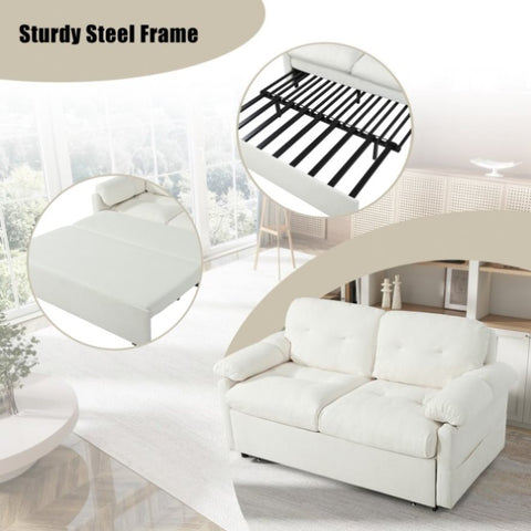 3-in-1 Convertible Sleeper Sofa Bed – This multifunctional sofa seamlessly transforms to suit your needs. Simply pull out the hidden bed frame to convert the loveseat into a chaise lounge or a spacious queen-size bed. With two adjustable length options, it offers the perfect balance of comfort and convenience.