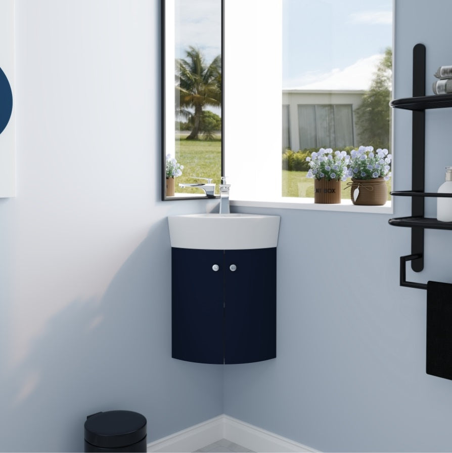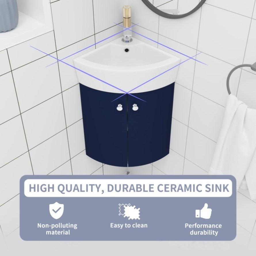 Corner Bathroom Vanity Sink Combo for Small Space Wall Mounted Cabinet Set, Ceramic Sink W99990112