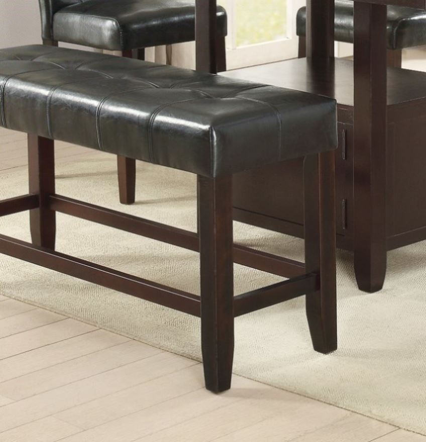 Counter Height 1pc Bench Dining Room Black Faux Leather Cushion Tufted Seat Wooden Base Comfort Seat B011130020