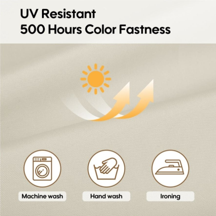 FUNCTIONALITY &DURABLE --Considering the extended lasting use in the outdoors, the fabric is made of polyester. But it is by no means cheap and the categories are costlier color woven fabric, which boasts high color richness, dimensionality, and color fastness to last for a long time outdoors. The splash-resistant splash-resistant and sun-resistant properties allow you to maintain it with less effort.