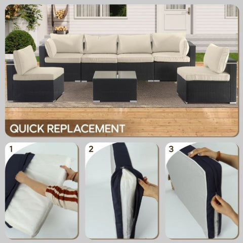 Cushion Covers for 7 Pcs Wicker Rattan Sectional Sofa, 14Pack Cushion Slipcovers Set W419P199031