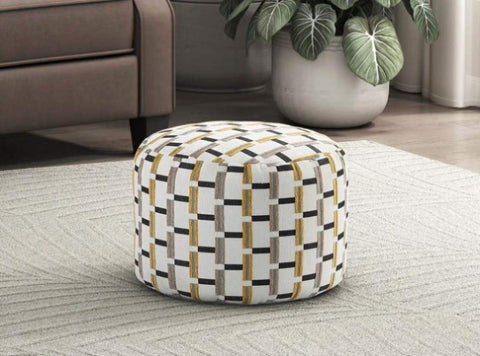 Whether the Nantes Collection serves to provide stylish accent to your home’s décor, convenient seating when the need arises, or as perfect place to put up your feet, the cylindrical accent pouf’s versatility of purpose makes it a convenient addition to your space. The pouf is covered in a linear multi-hued jacquard fabric upholstery. Product Dimensions: - Overall Dimension: 16" Dia x 17"H Listing Includes: - One Pouf Only.