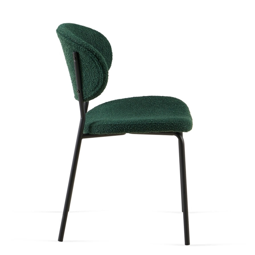 Dark Green Boucle Fabric Dining Chairs Set of 4