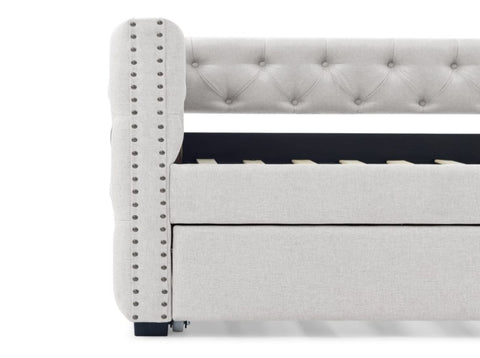 Comfortable Experience. Foam padded sides and back that provide optimal back support and comfort.This twin-size daybed provides you with a great seating experience that ergonomically supports your back and arms. Meanwhile gorgeous soft linen ensures you can keep cool for extended periods.