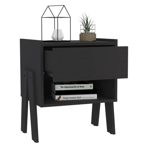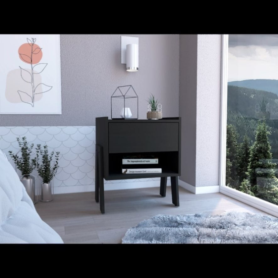 DEPOT E-SHOP Caladium Nightstand, One Drawer, One Open Shelf, Black B097132934