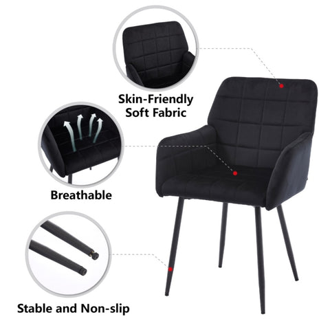 Comfortable and ergonomic: The modern arc backrest is equipped with armrests and cushioned seats (3cm high-density foam and 1cm quilted foam), making the dining chair ergonomic and providing sufficient support for the back and spine to achieve lasting relaxation. This chair is covered with smooth, soft, and skin friendly velvet, which will make you feel comfortable and comfortable to sit in.
