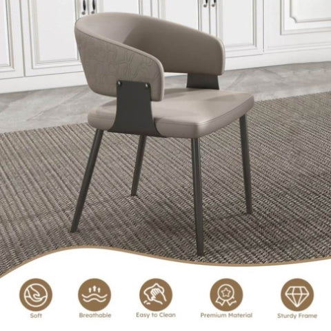 VERSATILE LEISURE CHAIR Elevate your space with these stylish yet incredibly durable PU leather armchairs. Designed for both comfort and sophistication, they seamlessly blend into any setting. Use them as elegant dining chairs to enhance family meals, as supportive office chairs for long work sessions, or as chic dressing chairs to complete your bedroom vanity. Their timeless design also makes them ideal for lounges, cafés, or reception areas, adding a touch of modern luxury.