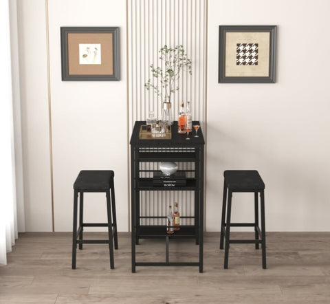 3 Tier Storage Shelves: The two stools tuck neatly under the table when not in use, keeping organized. With 3 side storage rack, The kitchen table for 2 is perfect for drinks, utensils, and glassware. Ideal for apartments, kitchens, studios, bars, offices, and dining rooms.