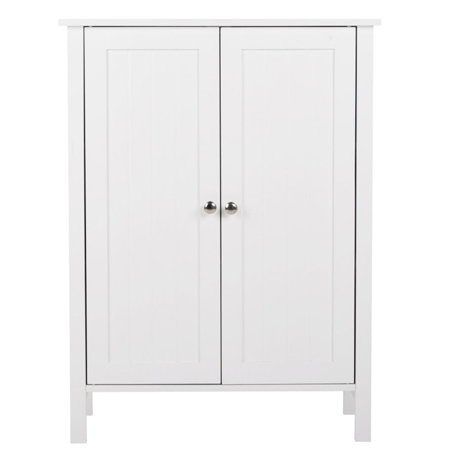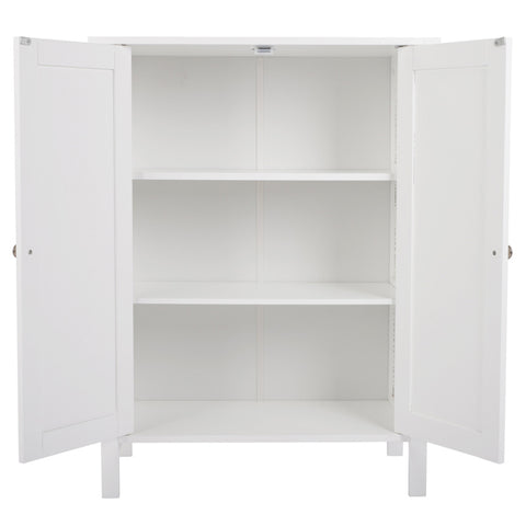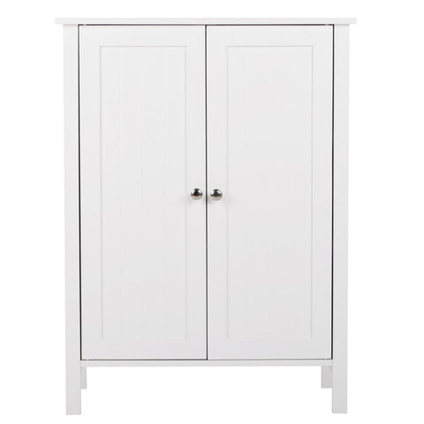 This is a simple and modern style standing bathroom cabinet. Adopting high quality and hard MDF sheet, it is waterproof and moisture-proof. Double doors and three-layer design can help you classify your items better. You can put a variety of toiletries, cosmetics, and other sundries. This bathroom cabinet is not only used as bathroom cabinet, but also can be used as side cabinet and cupboard. In addition to the bathroom, you can also put it in the bedroom, living room and kitchen to meet your diverse home design needs.