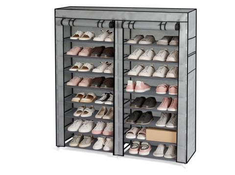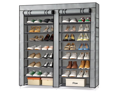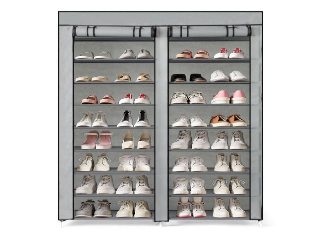 Double Row 10-Tier Non-Woven Fabric Shoe Cabinet with Iron Pipes and Plastic Components, Gray 25457979