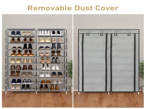 •Entryway Storage: This double row, 10-tier shoe cabinet is designed to provide ample storage space right at your entryway, keeping footwear neatly organized and out of sight.