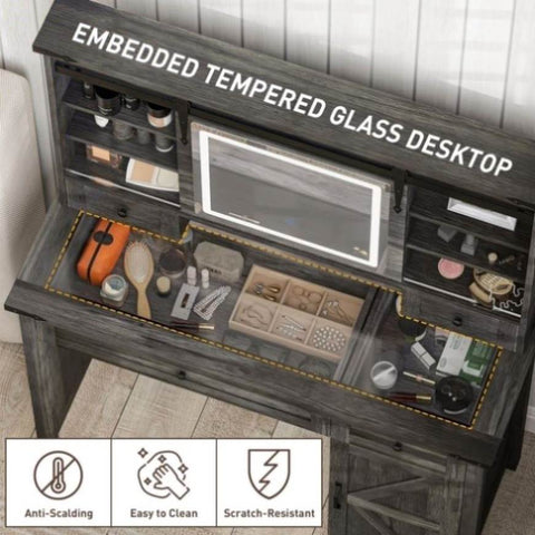 - - Scratch-resistant tempered glass tabletop offers a clean workspace