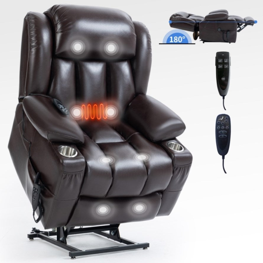 DUAL MOTOR POWER LIFT RECLINER CHAIR - You can press the buttons of the power-remote to control the lift or recline of the recliner chair, which means you can get any position you want, whether it's reclining 180 degrees or lifting. The lift chair is powered by electric dual motor mechanism, so it can recline nearly 180 degrees.